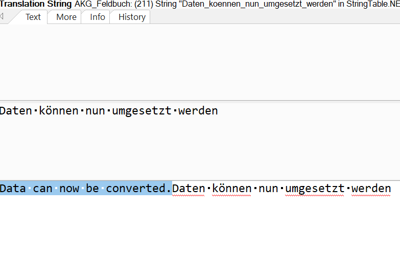 If I hit ENTER it writes the text in the translation window at Pos1 not replacing the source text: