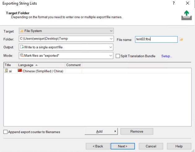 However, after I activated it, I could not export the "licensed translation bundle" any more. It always export a *.tbu bundle instead the "*.tbulic22" bundle.