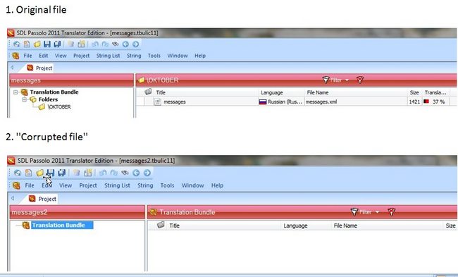 The .tbulic files we send to our translator and we receive from client seem ok, but once the translator starts his work, .dll resources from the project are *disappearing*. Closest i could find describing the problem is here (http://producthelp.sdl.com/kb/Articles/4807.html), but not sure if it really describes the issue we're having. Fiddling with the settings of the NET parser doesn't do anything, This is critical. tranlsator just lost 6000w...We're using Passolo 2011.