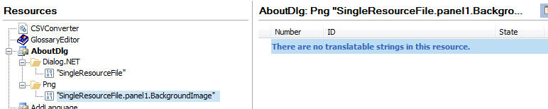 In addition the RC file contains references to some PNG and bitmaps. You didn’t sent them to me, so they will not be imported and Passolo is reporting this in the message window. If the files are available Passolo will import them correctly and you can handle them as any other binary resource. I simulated this with two sample files. When imported you can change the bitmaps but not the PNG as we don’t have in internal PNG editor (due to license restrictions).