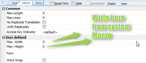 I need to write calculated variable from System Macro to User defined text length and width.