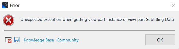 Pls Help!!! Getting a message "Unexpected exception when getting view part instance of view part Subtitling Data" and cannot open Trados at all.