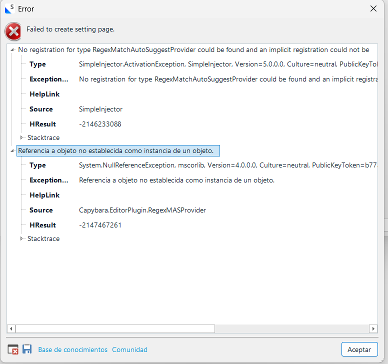 Regex Match AutoSuggest Provider appears to have stopped working correctly after updating Studio to 2024 SR1 - 18.1.3.6657 and prevents opening the main Autosuggest options page with this error: