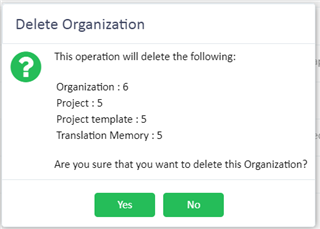 You can now delete organizations and sub-organizations that contain users, translation memories, termbases, sub-organizations or libraries. In effect, you no longer have to first manually delete all the resources inside an organization before being able to delete the organization itself, saving you valuable time when in need to clean-up your environment.