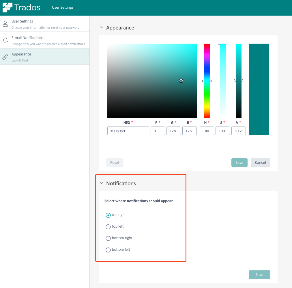 Trados users now have greater flexibility to decide where notifications are positioned within the interface.