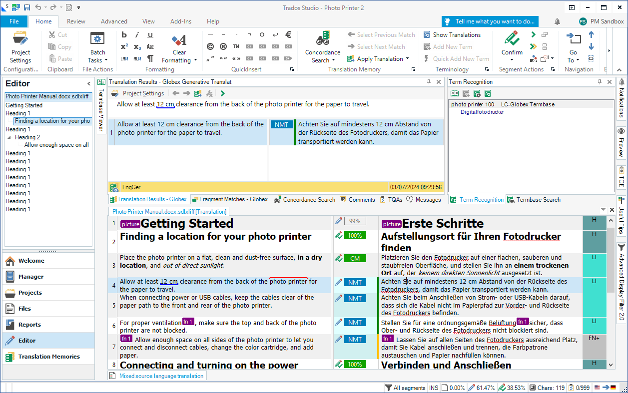 We've adjusted the way Trados Studio handles reports and statistics in order to ensure more precise and real-time progress reporting of the accuracy of your translations.