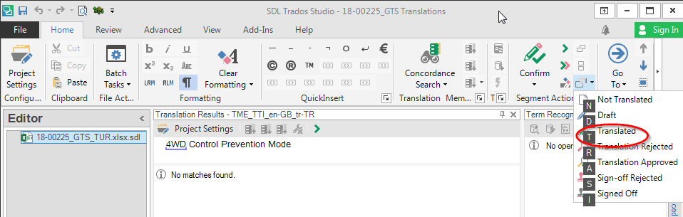 Could anybody suggest a script to apply 'Translated' status to an edited segment. NOT confirm, but only mark as translated, so that green mark appears against the segment but the segment does not go to TM.