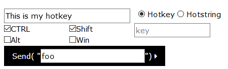 Just heard of this AutoHotkey Generator to easily create hotkeys & hotstrings.