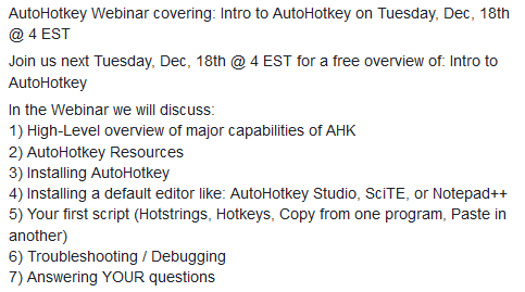 BTW: You can view Joe’s free AutoHotkey webinars here: