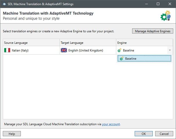 Why only Baseline is available here? In the previous release of Trados it was possible to select Baseline + Adaptive Engine or something like that.