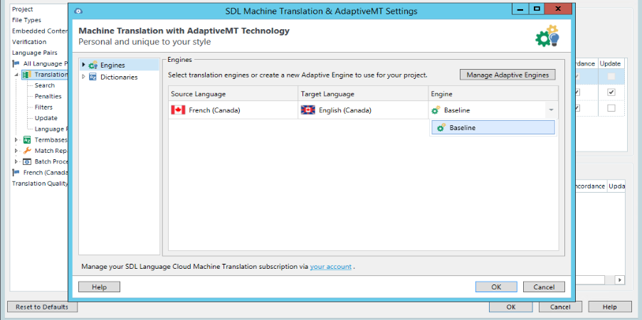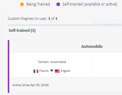 My project language pair is French (Canada) → English (Canada); could that explain why I cannot find my custom engine?