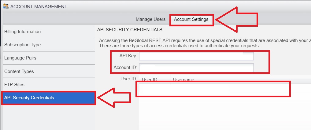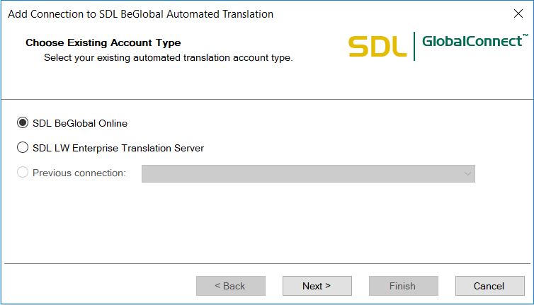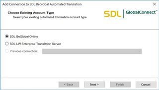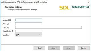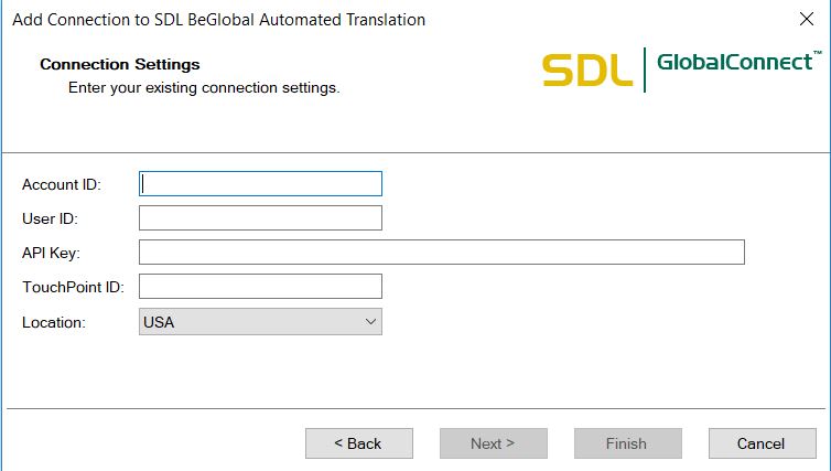 4. For Connection Settings please go to your BeGlobal account at https://enterprise.sdlbeglobal.com/desktop/index