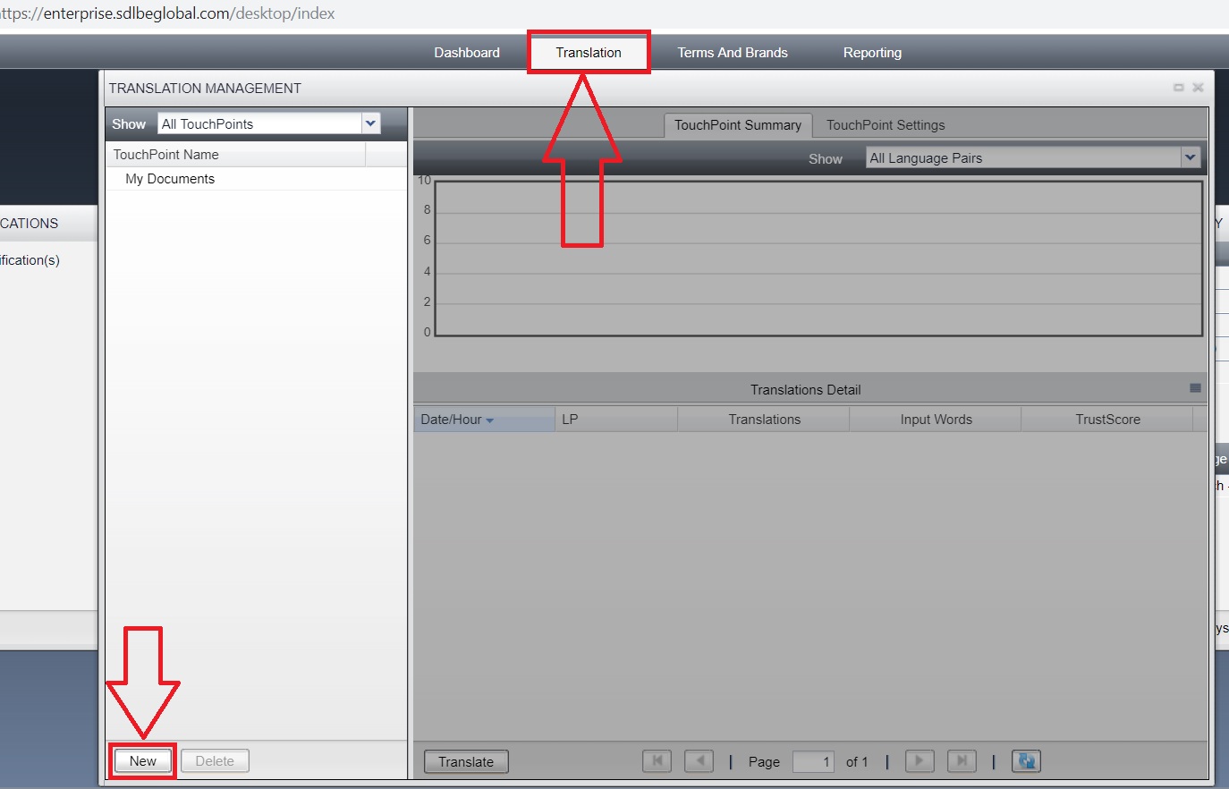 Select Translation tab and then New