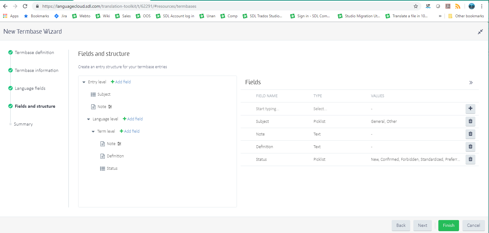 In the Help, the Creating Language Cloud termbases page: