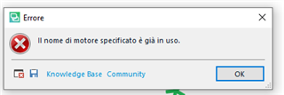 Error Message when trying to open the SDL log in: Italian: Il nome del motore specificato è già in uso.