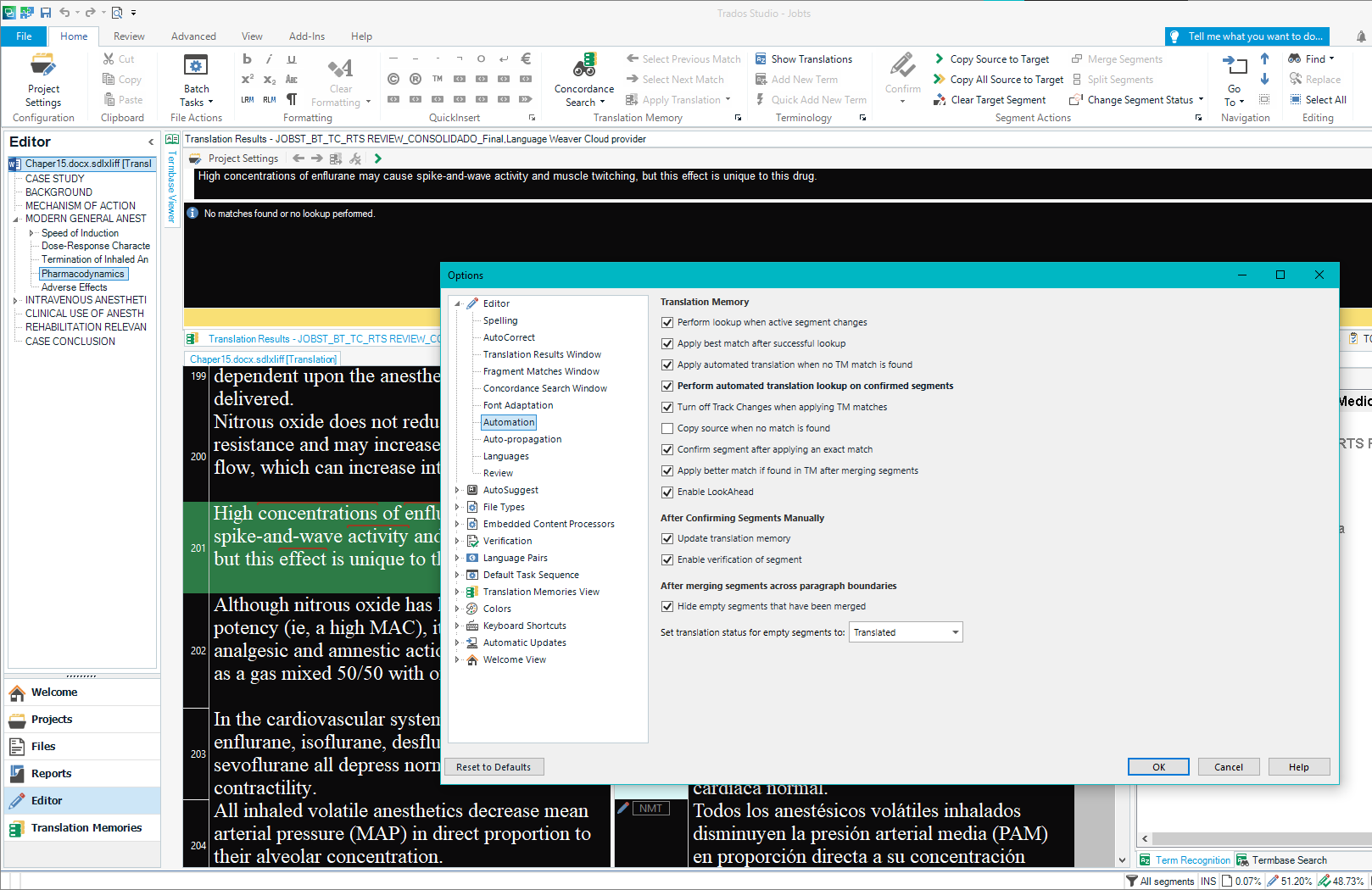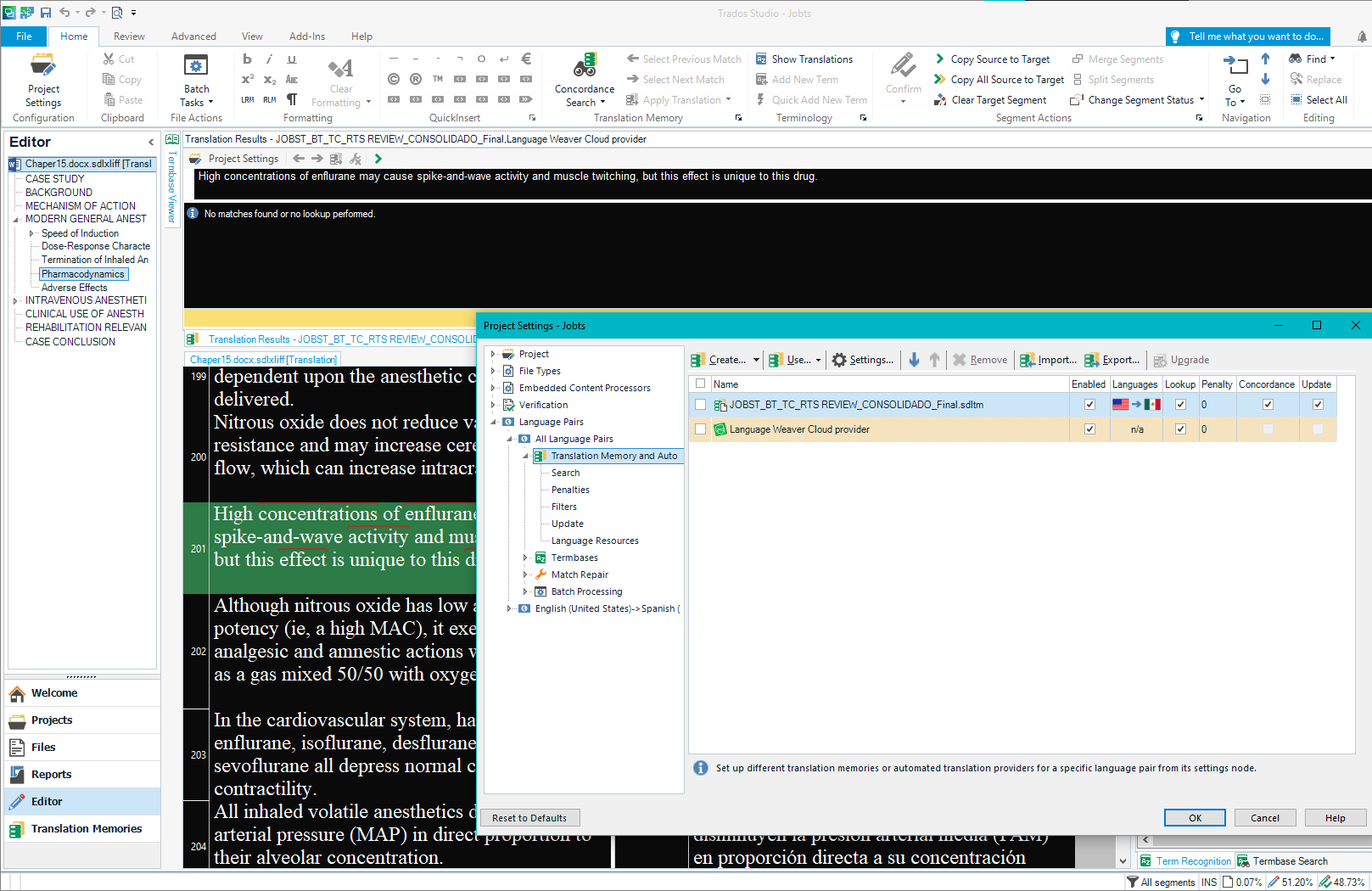 I've been working on the same project for about a month. Whilst translating a file today, my Translation Result Windows randomly displays either No matches found or no lookup performed, or No translation results to display.