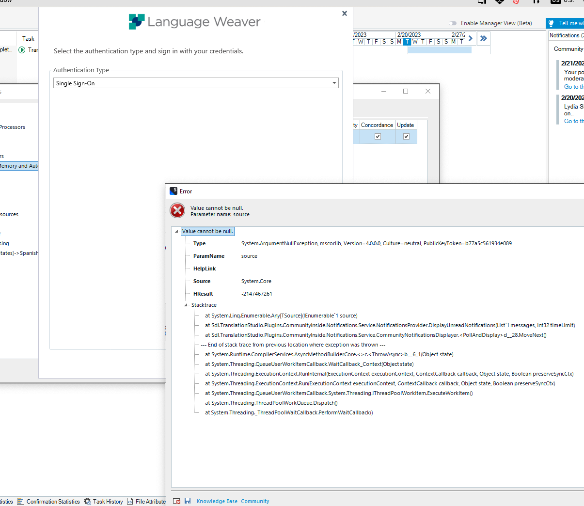 I just got the Trados Studio Freelance 2022 subscription. I´m trying to use Language Weaver. I have it downloaded, but when I choose it in the TM set-up, I get an authentication type pop-up. I chose Single Sign-on, but when I click the Sign In box it gives me the spinning blue circle of death. Nothing happens.