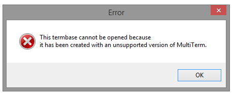 Termbase cannot be opened due to unsupported version of MultiTerm