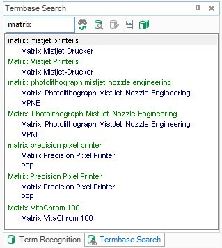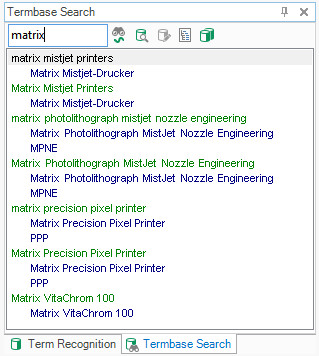In Multiterm and in the termbase viewer there’s no scrollbar to go through the terms, only arrows to hold down (see screen shot). There’s also no search field in the termbase viewer. And although there is one in Multiterm, it seems only to be able to search for the beginning of terms, not e.g. all terms containing a particular bit of text.