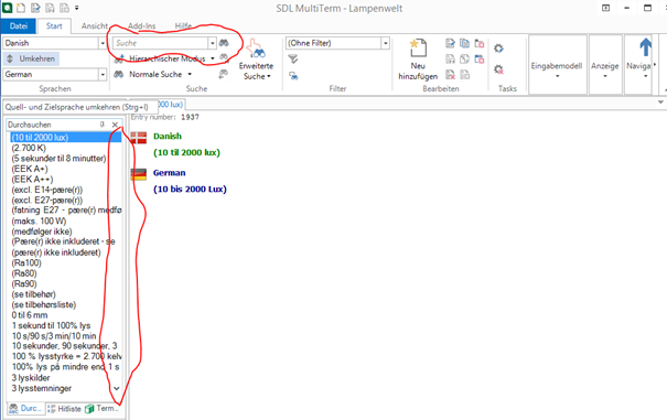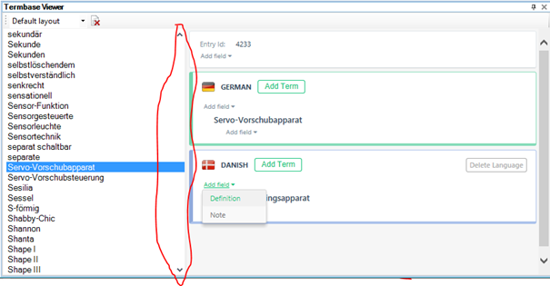 In Multiterm and in the termbase viewer there’s no scrollbar to go through the terms, only arrows to hold down (see screen shot). There’s also no search field in the termbase viewer. And although there is one in Multiterm, it seems only to be able to search for the beginning of terms, not e.g. all terms containing a particular bit of text.