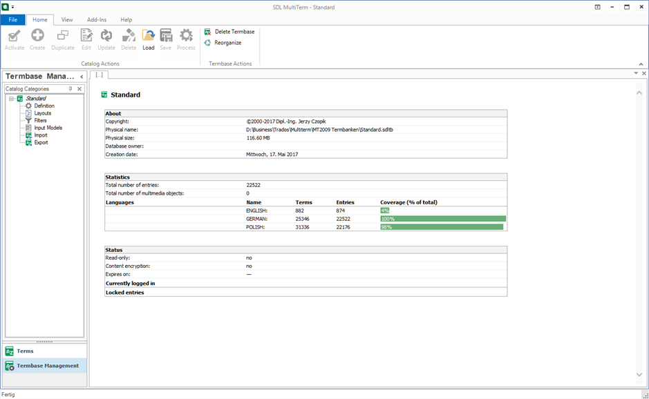 This is why I'm now addressing this community before uninstalling this incredible product that has given me so many headaches and losses for almost 20 years. Does anyone please know how to save and export these many hours of work? Unfortunately, exactly this term base consists of thousands of terms I had to do an extensive bilingual research for because they're not included in any of my specialised dictionaries or in any bilingual online resource. This is why I'd greatly appreciate it if you shared any ideas how to save this enormous work!
