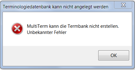 I cannot even create a new termbase. See the error messages below. This problem has existed since upgrade from 2015 to 2017. The new SR1 does not solve these issues.