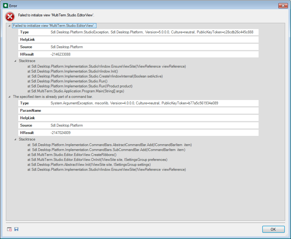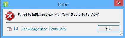 I've installed MultiTerm 2017, but when I try to open it I get the error message "Failed to initialize view 'MultiTerm.Studio.EditorView'."