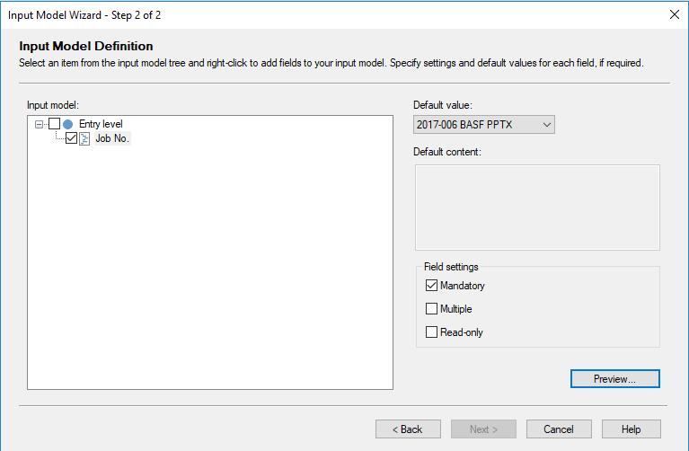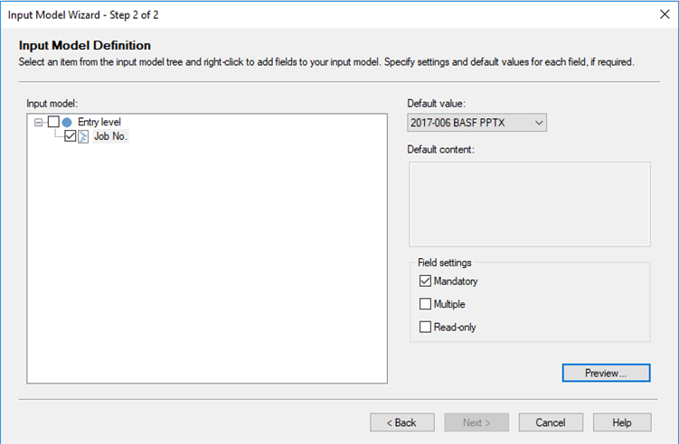 I have a (small, recent) termbase. When adding terms on the fly during translation in Studio, I'd like the job no. to be added by default to each new term. If I try to make the relevant settings in the input model, the "Next" button is grayed out, so all I can to is "Cancel".