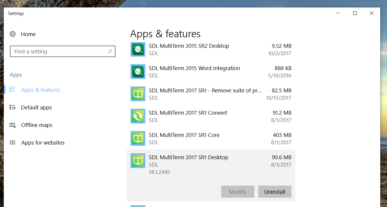 Hi!  I have Multiterm Destop 2015 SR2 and MT Desktop 2017 SR1 installed on my computer.  When I double click a Multiterm termbase, it opens in MT 2015 SR2.