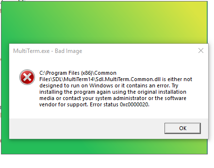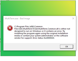 My MultiTerm suddenly stopped working this morning - wonder if anyone has seen this error before. I use Windows 10, it's still working on my other machine on Windows Vista.