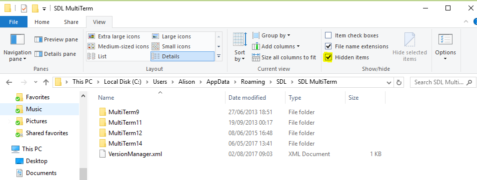 C:\Users\[Username]\AppData\Roaming\SDL\SDL Trados Studio\14.0.0.0