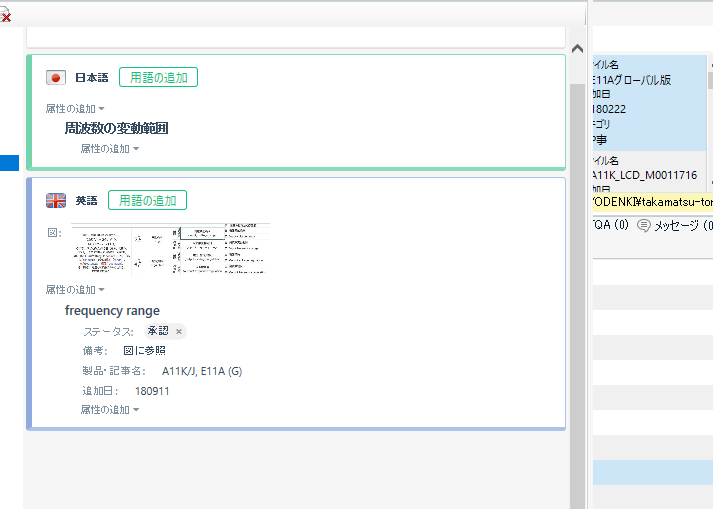 Original image displayed outside of Trados Studio, showing a table with technical specifications in Japanese, which appears clear and legible.