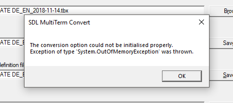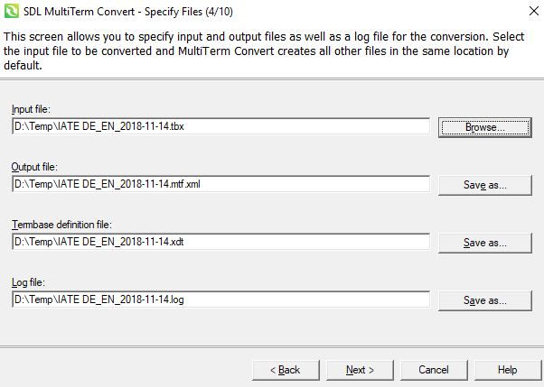 Then I started MultiTerm 2019 Convert and selected input/output as follows: