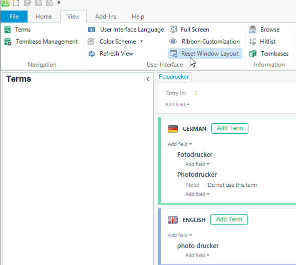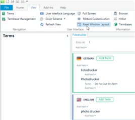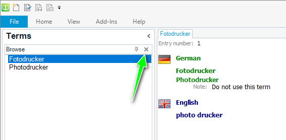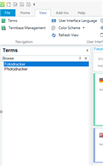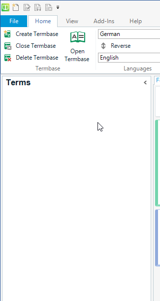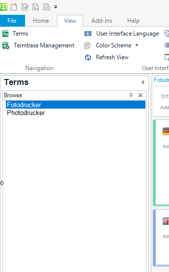 I'm not exactly sure how the program should work, but to my understanding on the left side in the "Termini" window it should show me all the entries that are in the terminology-database. See: