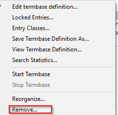I'm currently working in MultiTerm 2011 Administrator to set up term bases for our clients. I have administrator rights with my profile but I can't permanently delete the test term bases I've created while I was training. The "remove..." button is in fact greyed out.
