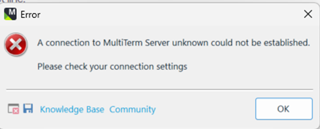 I can open Multiterm. However, when I click on “Open termbase” I get the message error (see screenshot) plus a funny “loading bar” which says “Loading Termbase List”.