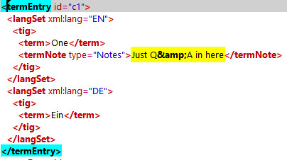 when exporting from MultiTerm 2015 to TBX LISA, the ampersand sign (as part of field content like "Q&A", for example") is not escaped rather than exported as such, and that leads to error messages when validating the export file. Any hint?