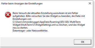 After installing Windows 10, the MT Widget keeps crashing. The problem can be resolved by deleting the WidgetSettings.xml filebut the problem keeps occurring after a few days.