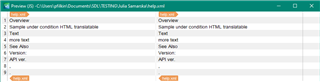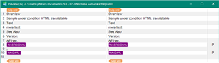 I have some conditional text in the created manuals that should not be translated. How is it possible to mark that text or conditions so that they are visible or non-translatable?