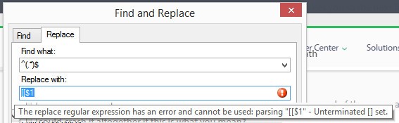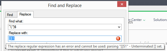 - [ cannot be used in the Replace field (although including both the opening and closing brackets works); using \[ will naturally result in \[ being inserted in the replacement, instead of the bracket being escaped