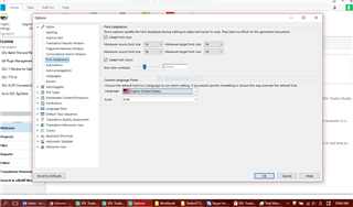 I'm giving font adaptation another swing but once again having no luck with finding the right combination to get the desired results. For now, what I just want is for Studio to display a target language in the font of my choice. Eventually, I'd like that font to also be used in the generated target file, but I've been told only the default font settings in the native file will determine the font output. But one thing at a time.