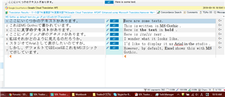 I have a test xlsx file written with text in MS P Gothic in Japanese to be translated into American English. Actually, I have a bunch of screenshots explaining my process so please see the powerpoint. And please try yourself using the attached excel file.