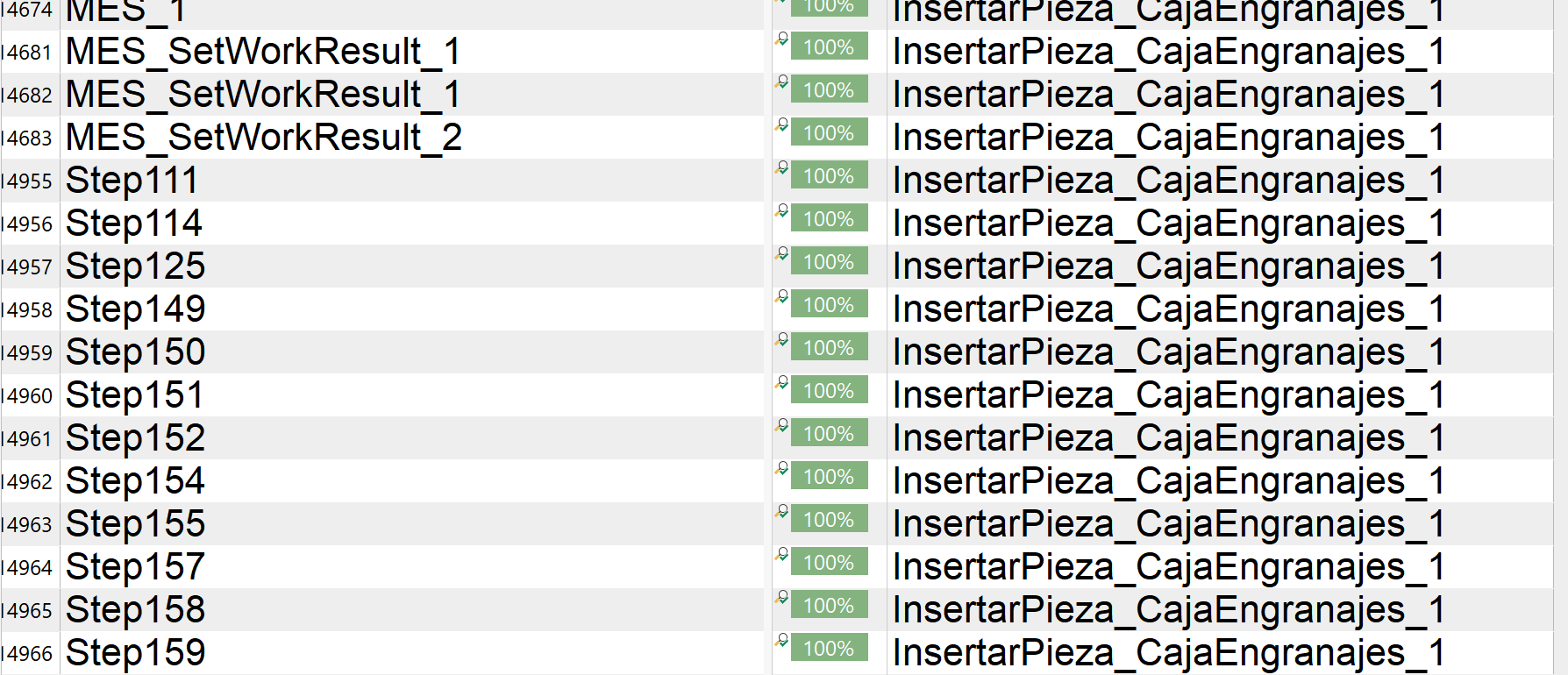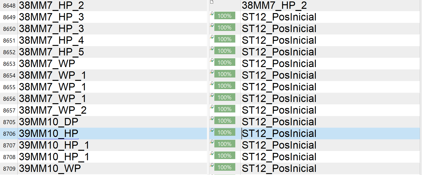 Screenshot showing a list of segments in Trados Studio with source and target text columns. Some segments are marked as 100% matches, but inconsistencies are visible in the source text.