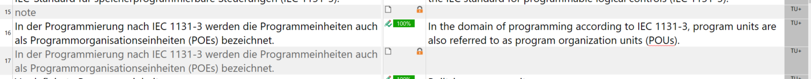 For whatever reason (to be dealt with in the newar future ;-), Notes and warning texts are doubled in Trados - one segment with the normal text, the other with the same text but locked.