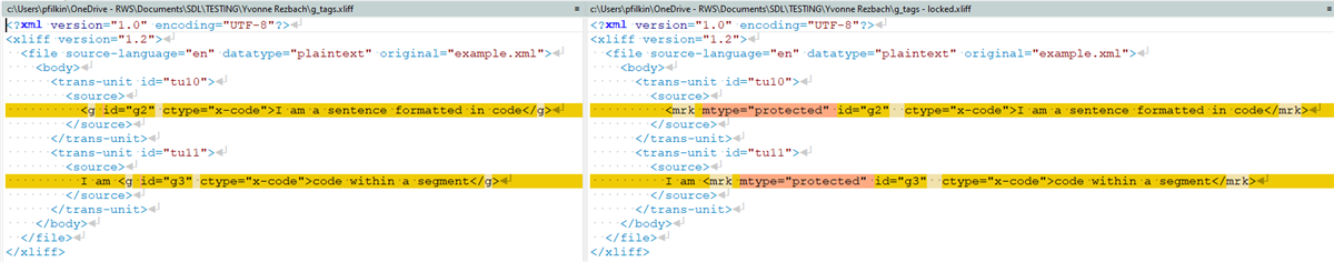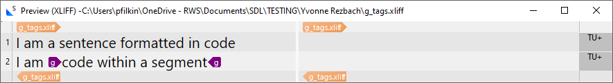 I want the xliff parser to lock these tags with "code" formatting. I tried with the following setting in the file type settings but there was no effect: