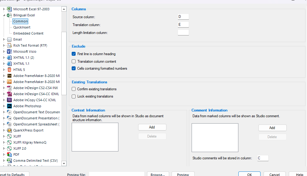 I'm attempting to load a bilingual Excel file into Trados (Studio 2021 SR2 - 16.2.12.9338) with the parameters in screenshot #1 below. The preview looks fine (screenshot #2), but in the editor window, there are no translatable rows (screenshot #3). Any advice on what I should be doing differently?