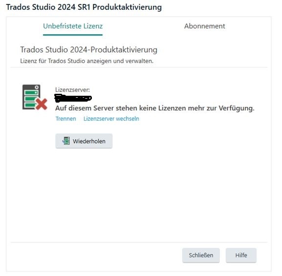 I am reaching out because my Trados Studio 2024 has stopped working. When I try to start the programme it immediately shuts down. I tried several times. One time I got the message in the screenshot below. However, according to my online profile the license is activated. We were able to make an update after the problem arised and Trados worked for a short time after that. But then shortly after the same problem. I would be glad for any advice on how to solve this problem. Thank you for your help!