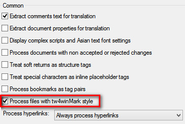 It's on the filetypes. You have to do this before you prepare your project, otherwise it's too late, so go to File -> Options -> Filetypes and then navigate to the filetype you need. In your case it will be one of the Word filetypes. Best to set them up like this too so you use the DOCX filetype instead of the old one: