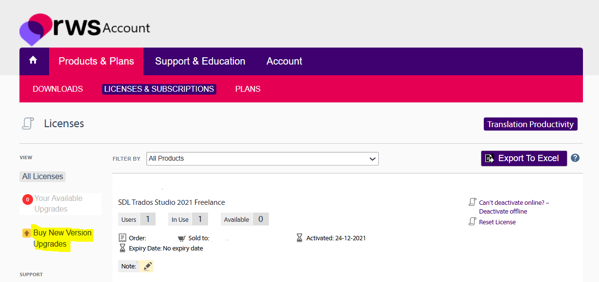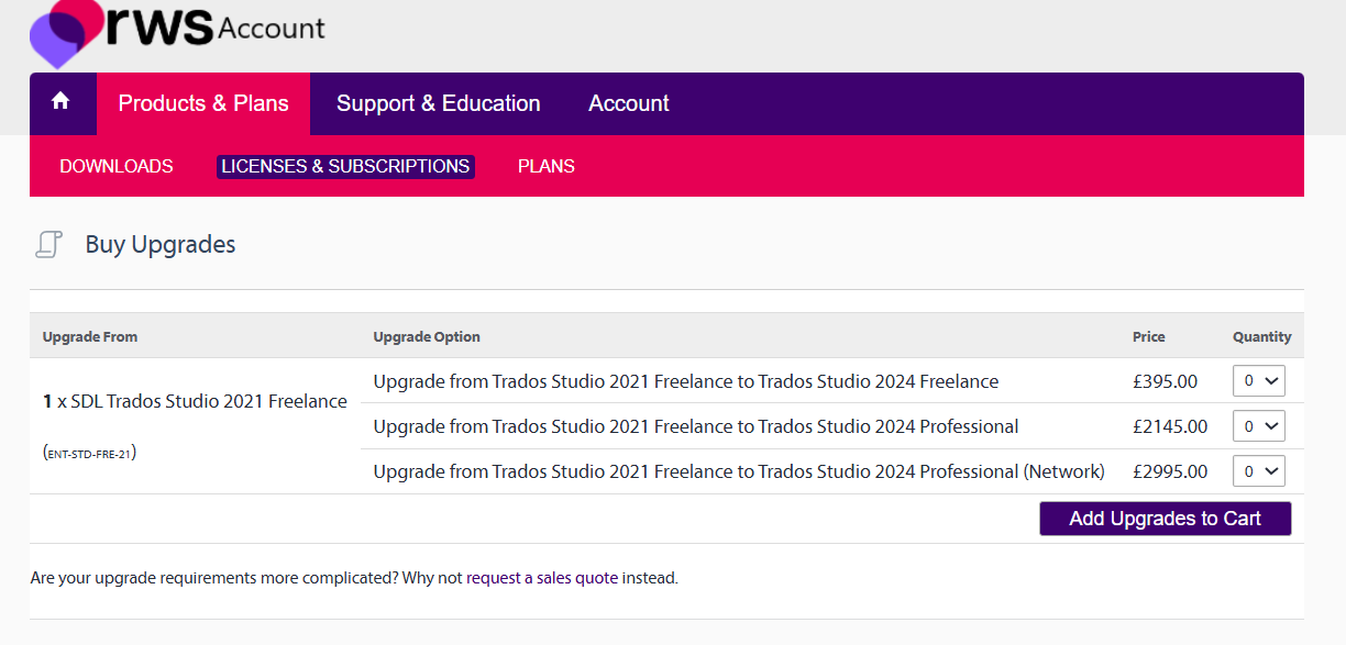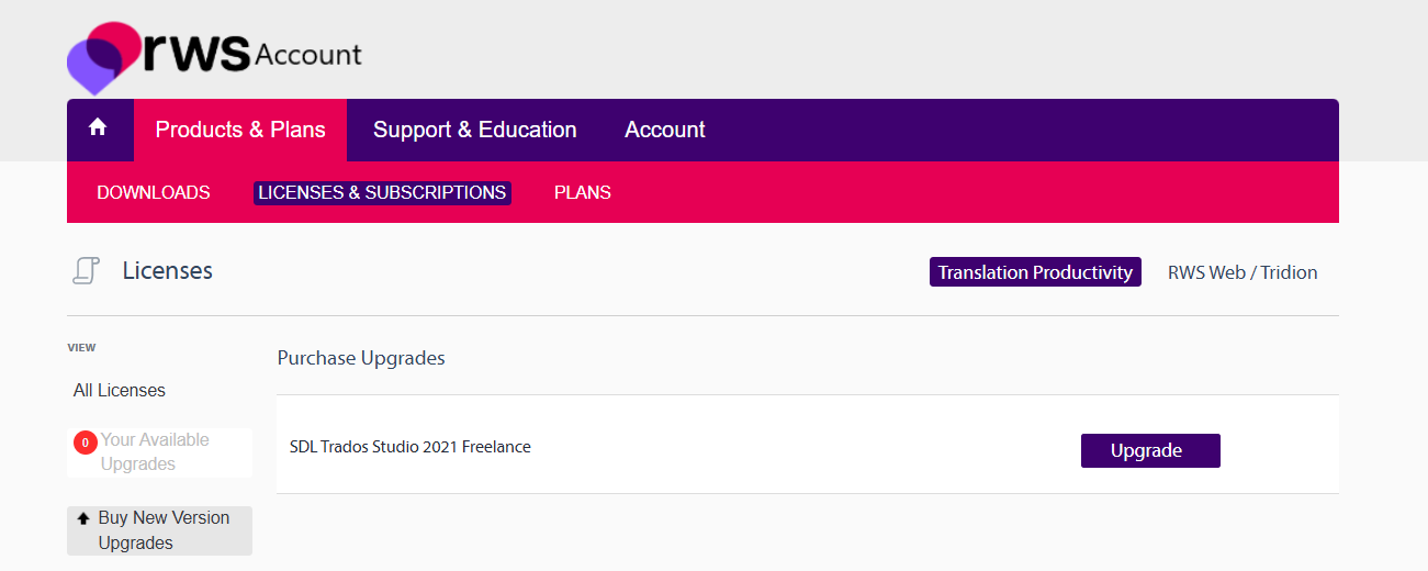 If you need any assistance with purchasing new license/upgrades, please contact trados@rws.com or, if you represent a company, your RWS business development manager.