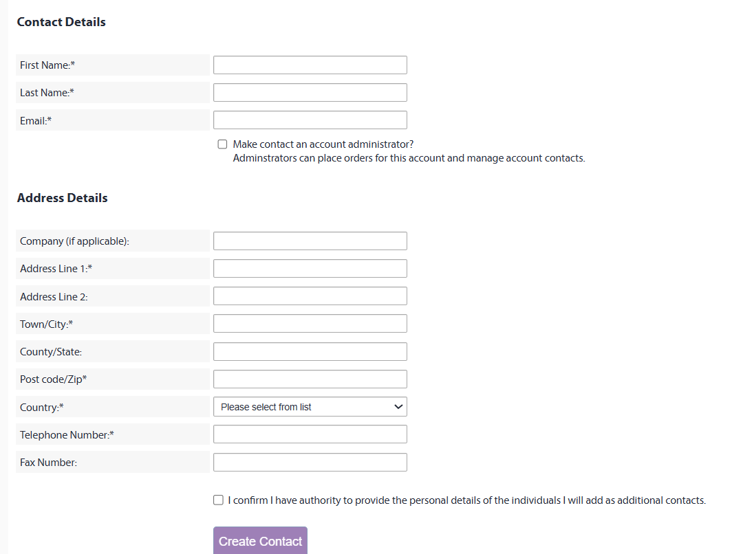 Adding new users is simple, while you are still on the ACCOUNT DETAILS page, please complete all contact details fields for a new user and click on the CREATE CONTACT button. The user has been added to your account: